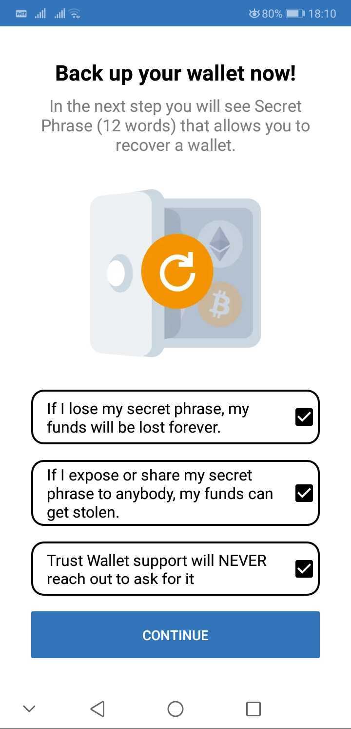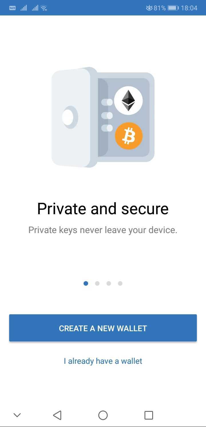 3. Start the Trust Wallet app and press "Create a new Wallet"